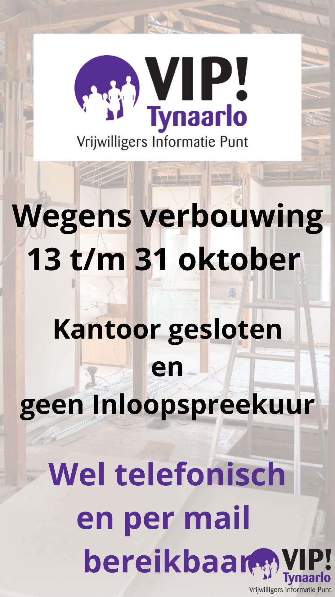 Tijdens die periode is het kantoor van het VIP! ook gesloten.