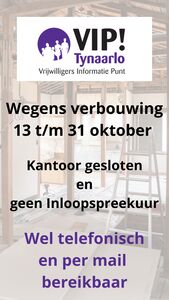 In verband met de verbouwing van Bibliotheek Zuidlaren is er van 13 t/m 31 oktober geen Inloopspreekuur van het VIP!